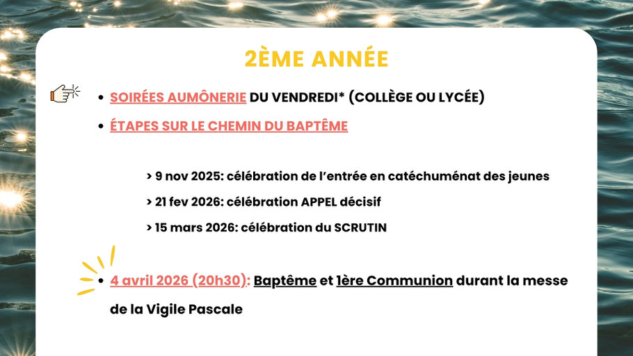 2) Étapes spécifiques sur le chemin vers le baptême (pour les 2ème année) :